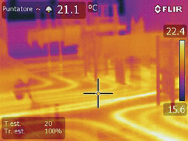 La termografia all'infrarosso è l'arte di trasformare un'immagine a infrarossi in un'immagine radiometrica che consente di leggere i valori della temperatura, non percepita dall'occhio umano. In altre parole, grazie all'utilizzo di innovative termocamere, l'indagine termica a infrarosso converte il calore rilevato in segnale elettronico, rilevando punti caldi e freddi delle superfici e restituendo una mappa colorata di facile lettura.